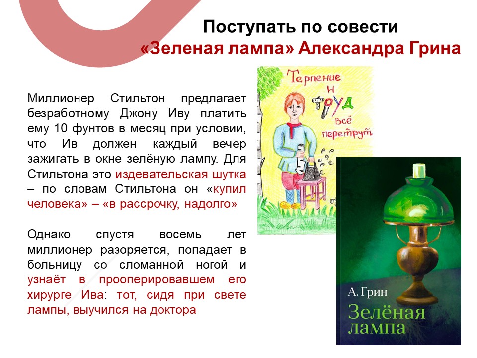 Вот еще одна история, описанная в рассказе Александра Грина «Зеленая лампа».