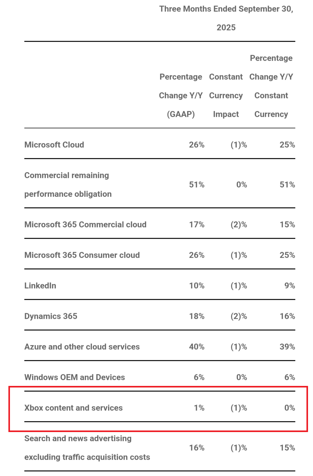 "Общая выручка снизилась на 2%, что эквивалентно $113 миллионам. Основной причиной стало падение продаж консолей Xbox Series X|S, частично компенсированное ростом выручки от продаж контента и сервисов - благодаря увеличению числа подписчиков Xbox Game Pass и играм от сторонних разработчиков".