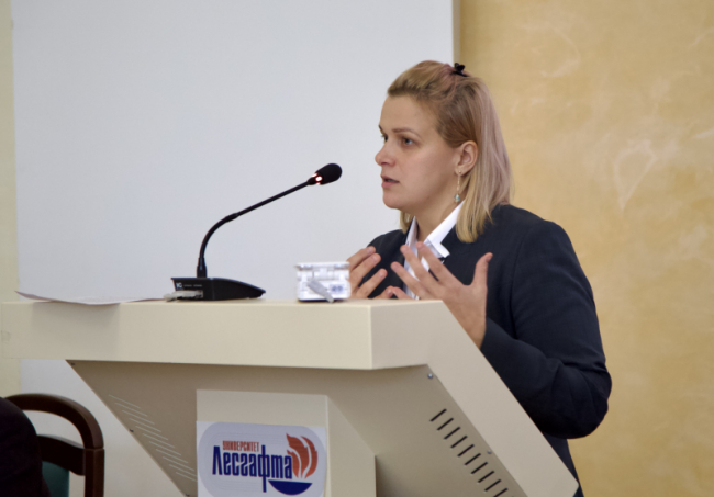 Елена Косьмина, заведующая кафедрой теории и методики высокотехнологичных видов спорта НГУ им. П.Ф.Лесгафта, обозначила проблемы, связанные с подготовкой квалифицированных кадров в области компьютерного спорта.