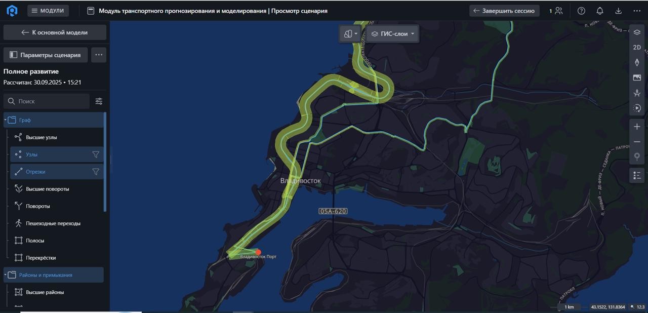 Перед разработчиками стояла задача создать инструмент для оценки текущей логистической ситуации с возможностью прогнозирования ее развития в перспективе. Совместная команда инженеров-программистов и специалистов-транспортников перенесла в цифровой контур текущую маршрутную сеть с учетом грузооборота, проанализировала уровень загруженности инфраструктуры и разработала сценарии по увеличению пропускной способности транспортного узла, включая планы по строительству новых и реконструкции старых объектов.