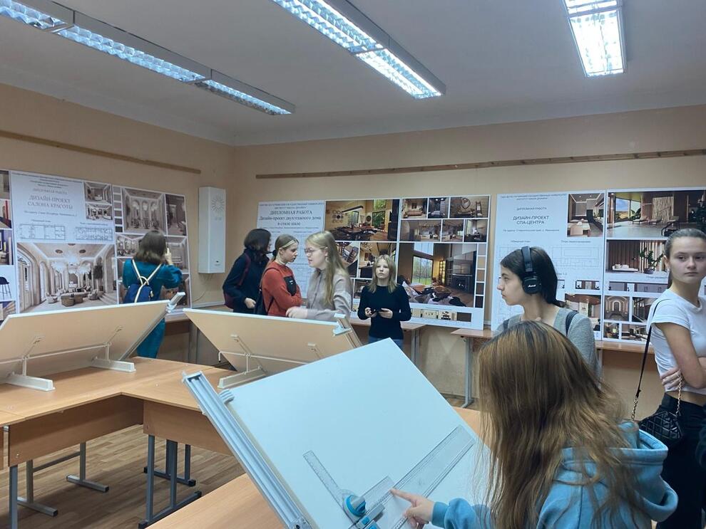 Как рассказала преподаватель направления «Дизайн интерьера» Ольга Соколова, на последней защите дипломов один из членов комиссии отметил, что уровень работ выпускников института значительно вырос с прошлого года и схож с уровнем бакалаврских дипломов петербургских университетов. Увидеть выпускные работы – например, дизайн-проект ресторана в стиле арт-деко по улице Чкалова – можно было в актовом зале после окончания экскурсии.