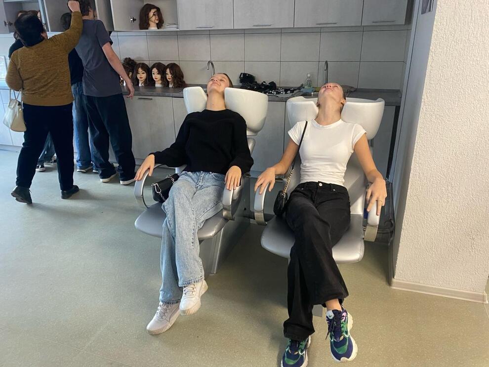 Любителей фотосетов приятно удивило отдельное помещение для съемки со специальной подсветкой и зеркалами, принадлежащее направлению «Технологии индустрии красоты». Эта специальность появилась в «Школе дизайна» в прошлом году. Ребята обучаются парикмахерскому делу и визажу. Дипломной работой становится готовый образ модели: макияж, окраска, стрижка и укладка волос.