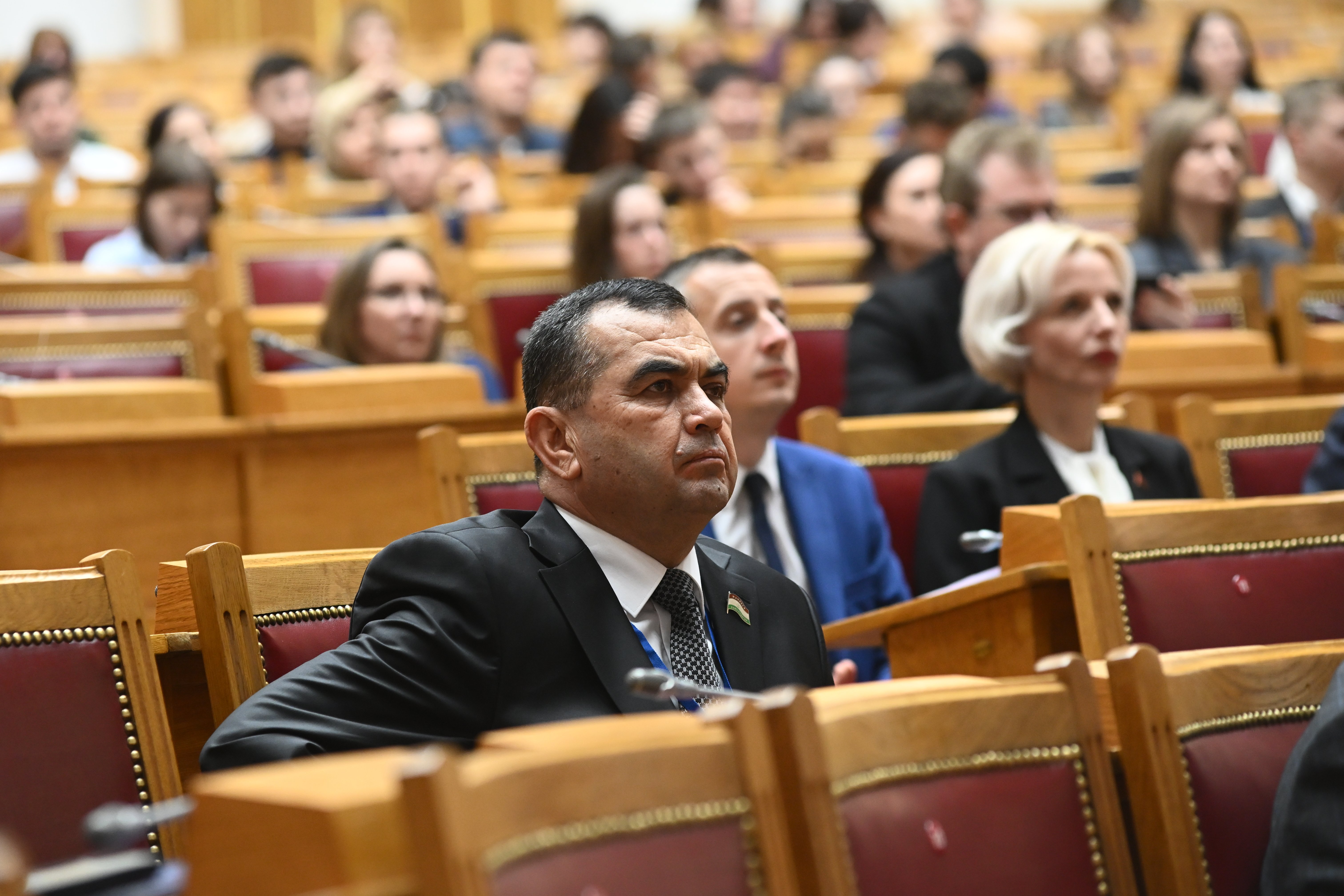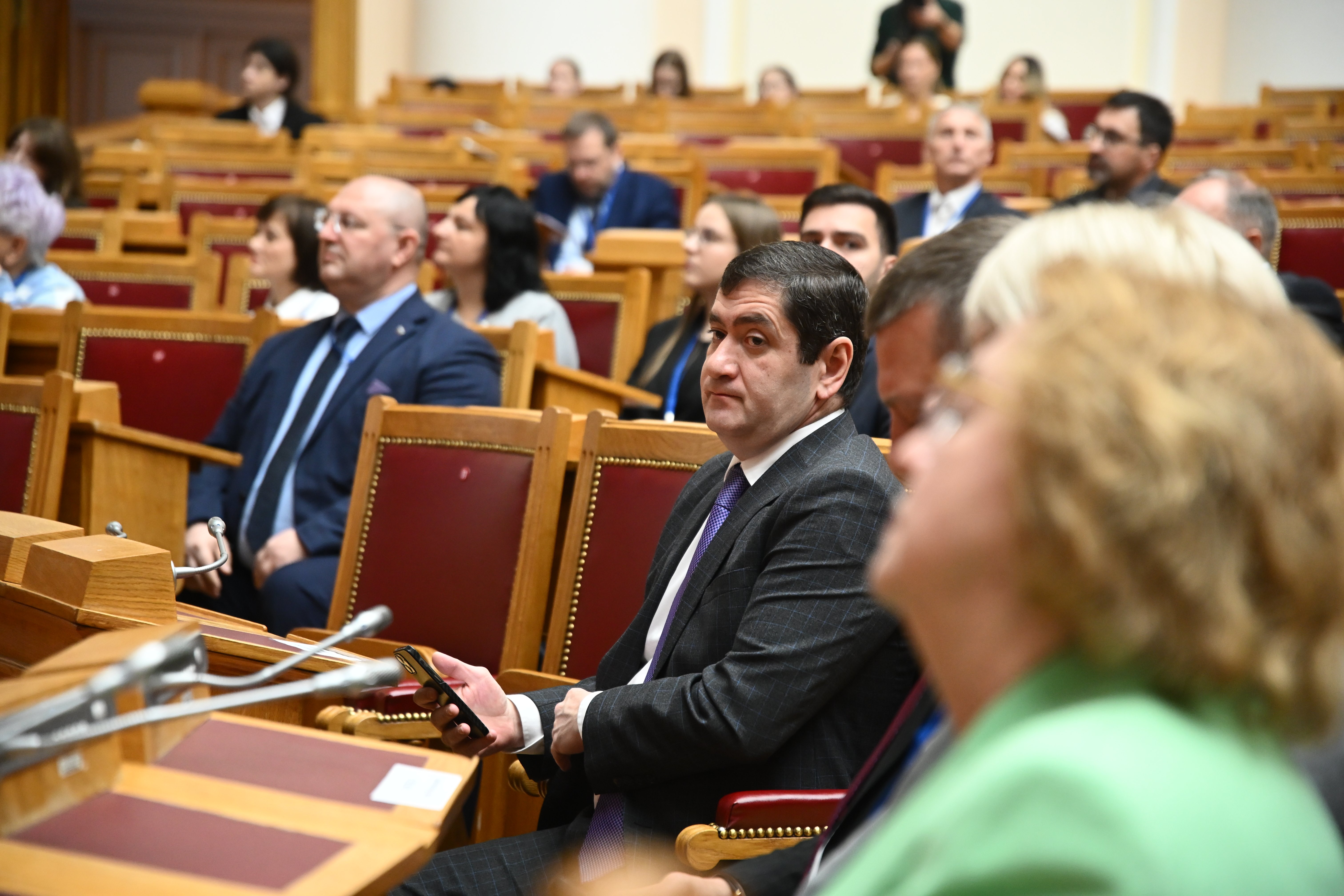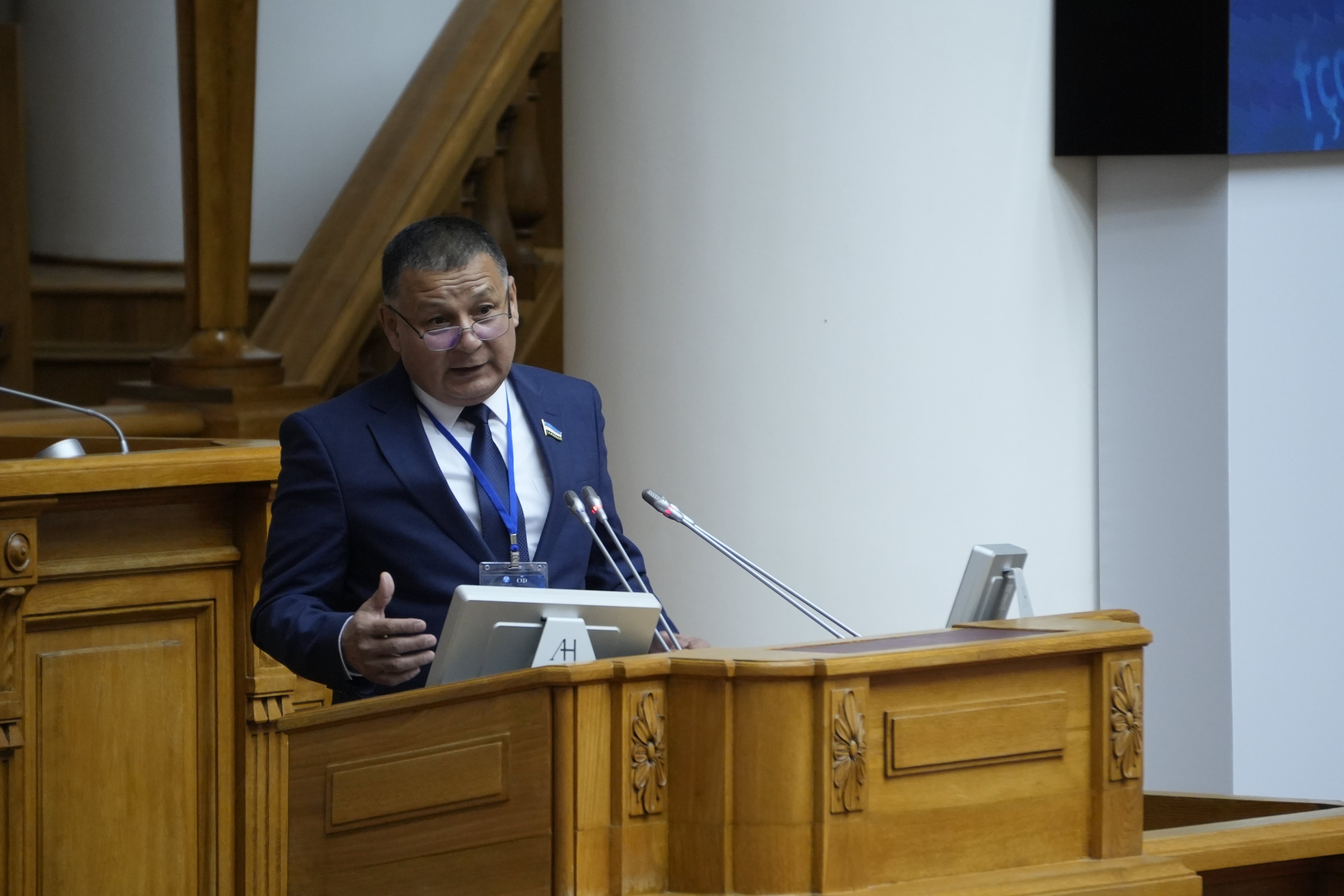 Текст приветствия огласил первый заместитель председателя Комитета Государственной Думы по делам СНГ, евразийской интеграции и связям с соотечественниками Казбек Тайсаев.