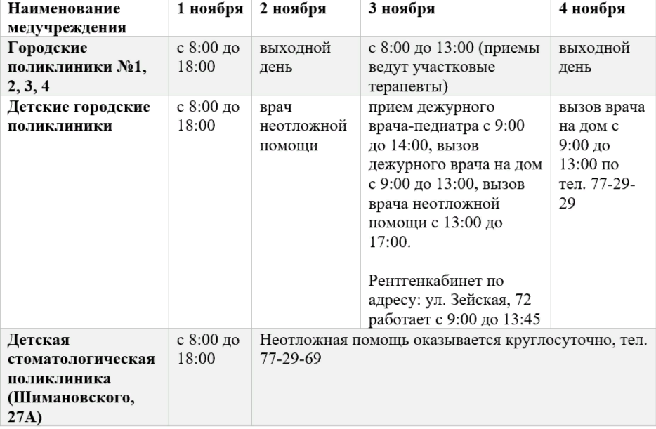 В праздничные и выходные дни поликлиники Благовещенска будут работать по измененному графику. Однако медицинская помощь в стационарах будет доступна круглосуточно.