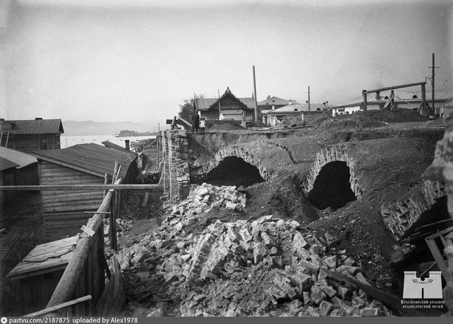«Обвал бульвара над каменными кладовыми (пакгаузами) на набережной Енисея», — говорится еще в одной точке, отмеченной у Речного вокзала.
