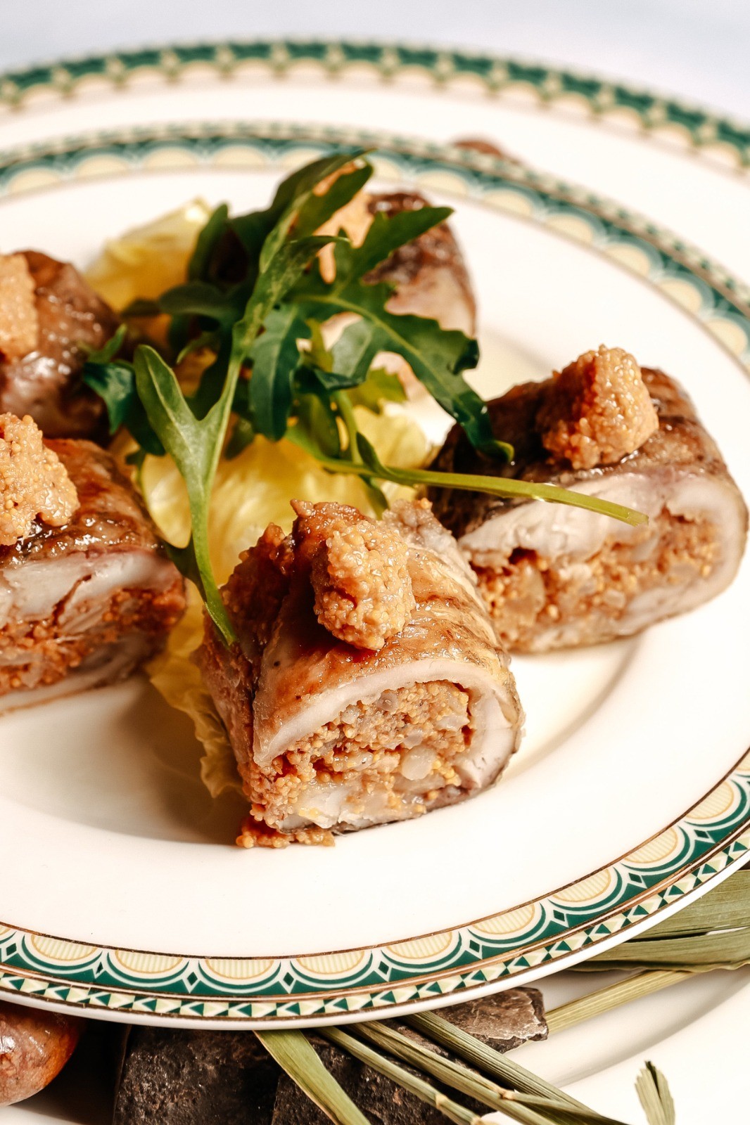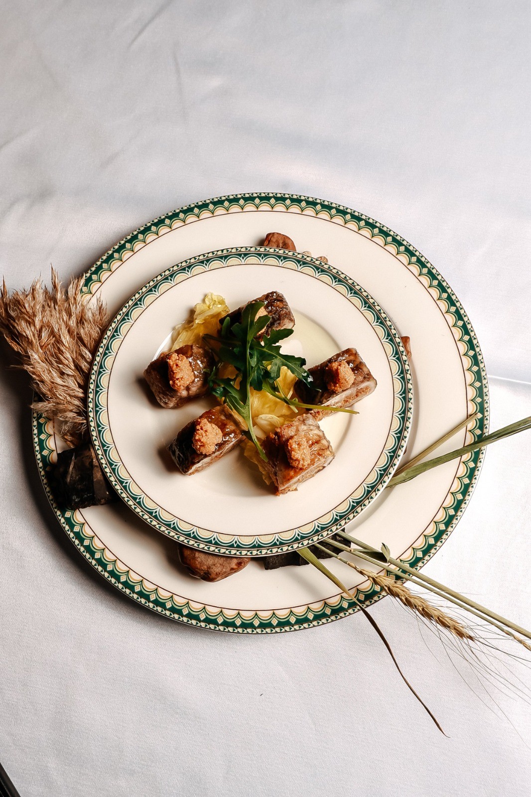 - У нас в новом меню появился новый салат «Амма», созданный в честь богатства Амгинского улуса. Его основой являются местные продукты: мидии, сыр и пшеничные чипсы. Пшеница — бренд Амгинского района, подчеркивает уникальность местной кулинарной традиции. Особого внимания заслуживает рулет из карася «Кэбээйи» из Кобяйского улуса. Внутри ролла находится паштет из внутренностей карася. Эта рыба имеет важное значение в культуре народа саха, олицетворяя стойкость и способность выжить в суровых условиях замерзших озер.