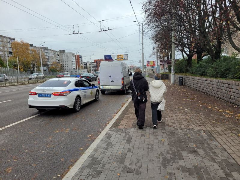 На глазах у очевидцев на улице 9 Апреля на подъезде ко второму эстакадному мосту в пятницу, 31 октября 2025 года, ДПС остановила фургон «Мерседес Спринтер» с регистрационным номером из города Амберг (федеральная земля Бавария).
