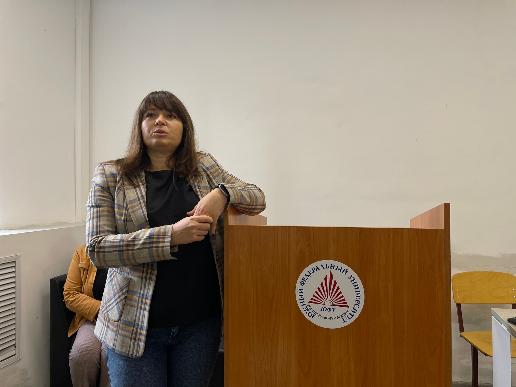 Модератором встречи выступила доцент АПП ЮФУ, руководитель Информационно-консультационного центра проекта «Образовательный кластер ЮФО» Марина Кореневская. В своём приветственном слове Марина Евгеньевна отметила значимость профессиональной ориентации школьников и подчеркнула, что Академия психологии и педагогики ЮФУ предоставляет широкие возможности для личностного и профессионального развития будущих студентов. В программе мероприятия приняла участие доцент кафедры психофизиологии и клинической психологии Ирина Скиртач, представившая направление подготовки по профилю Клиническая психология.