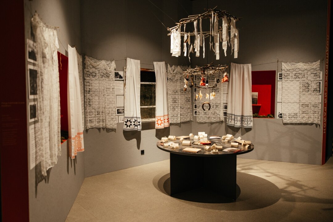Например, результатом исследования Кировского района группой под кураторством бюро KATARSIS Петра Советникова и Веры Степанской стала инсталляция «Ландшафтные параллели». Центральный элемент экспозиции — игра-лабиринт в виде деревянного диска-балансира, вдохновленного топографией местности. А группа под кураторством Яны Голубевой и Антона Тендитного из MLA+ представили работу «Вепсский лес», посвященную исследованию одноименного заповедника: мобиль из сакральных предметов вепсов вроде куклы Капустки и костей щуки, а также зины и путеводители.