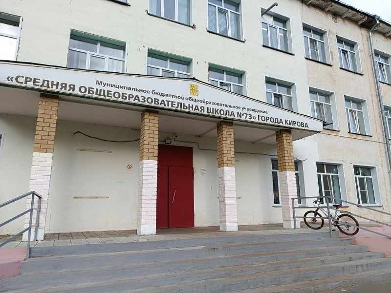 В кировской школе № 73 ремонтируют повреждённый угол фасада.