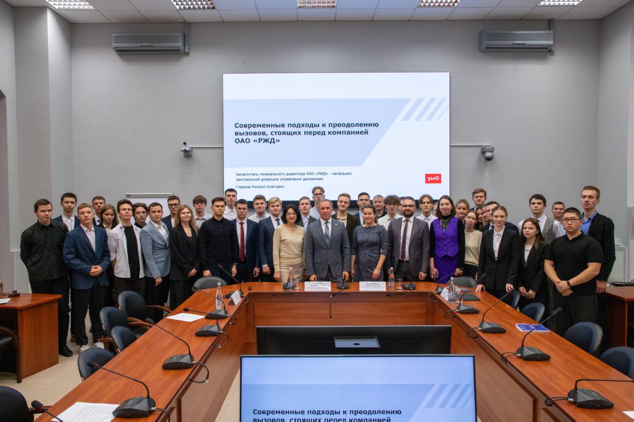 Заместитель генерального директора РЖД Михаил Глазков встретился со студентами Института управления и цифровых технологий Российского университет транспорта 27 октября. Темой обсуждения стали современные подходы к преодолению вызовов, стоящих перед компанией.