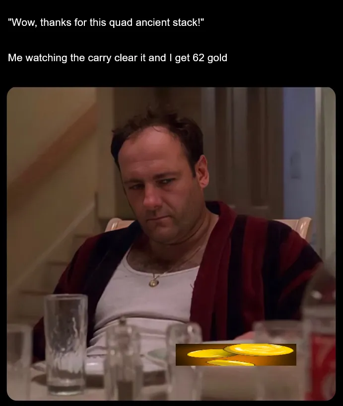 Мое лицо, когда керри фармит его, а мне достается всего 62 золота:
