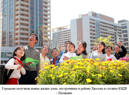 Вспоминается фраза Председателя Государственных дел Ким Чен Ына из его речи, с которой он выступил на церемонии начала строительства жилых домов на 10 тысяч квартир в г. Пхеньяне в марте 2021 года: дело крупномасштабного жилищного строительства, проводимое нашей партией и нашим государством, далеко не рассчитано не на получение какой-то экономической пользы, а является священным делом, которое от начала до конца нацелено на то, чтобы достояние государства и плод творческого труда трудящихся масс целиком послужили благосостоянию самих трудящихся.