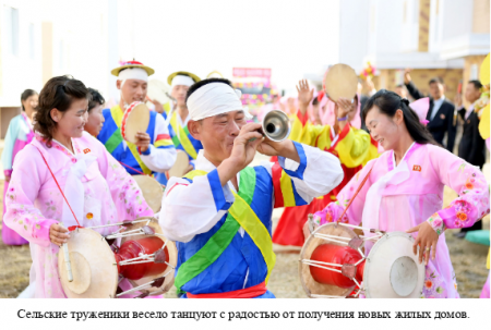 В конце июля 2024 года некоторые районы провинций Северный Пхёнъан, Чаган и Рянган на северной части Кореи пострадали от наводнения. А в этих районах всего лишь за 4 с лишним месяца были построены современные много- и одноэтажные жилые дома, и воздвигнуты культурные городки в деревне и феерические, как говорится, селения.
