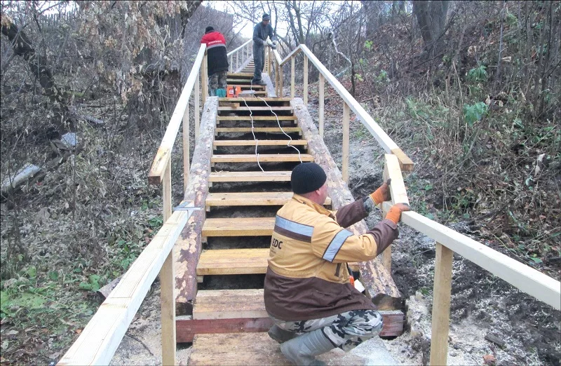 Но со временем деревянная лестница обветшала. Частичным ремонтом настилов и содержанием территории занимались общественники, которым не под силу организовать объёмные работы. И вот долгожданное обновление!