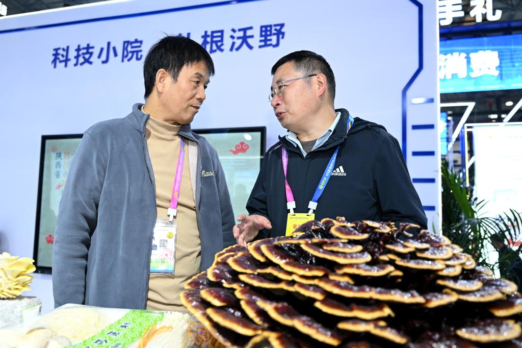 25 октября 2025 года, посетители общаются на 32-й Китайской /Янлинской/ ярмарке высокотехнологичных достижений в сфере сельского хозяйства. /Фото: Синьхуа/