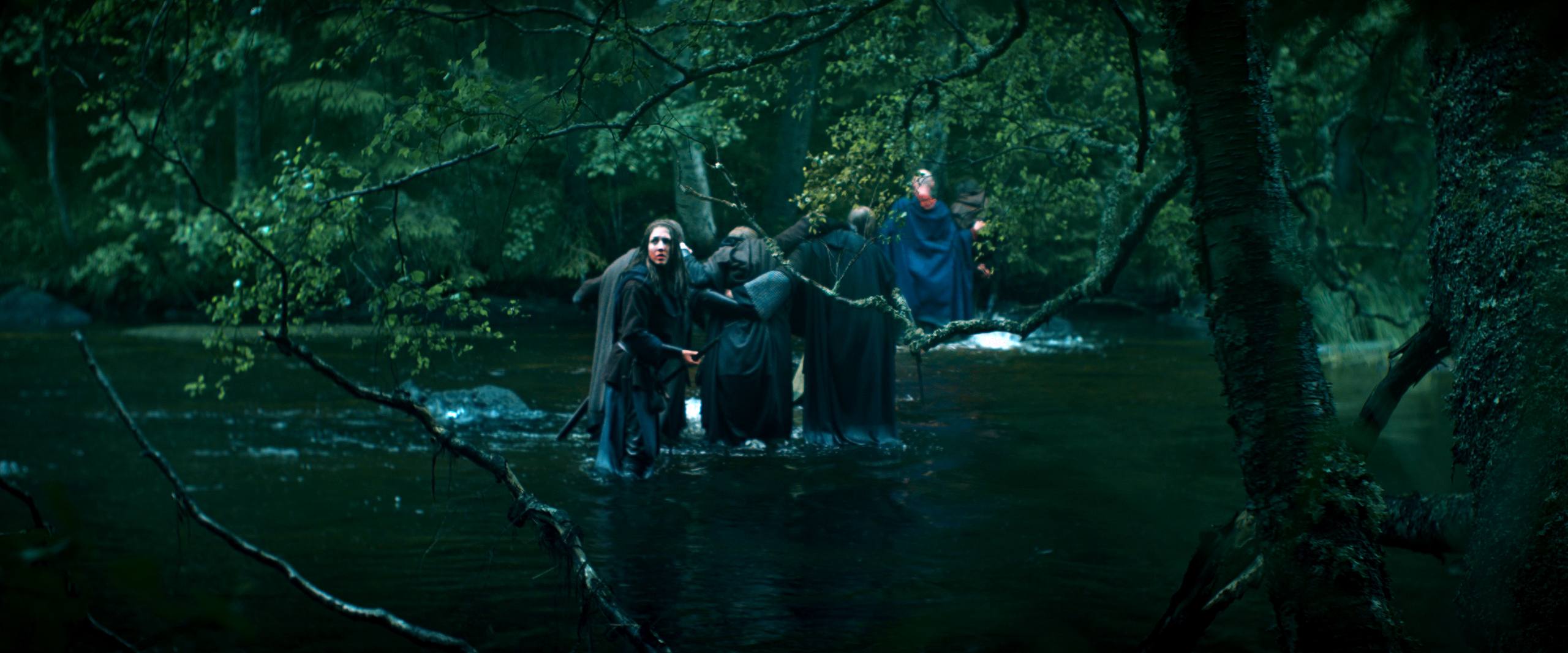 Вскоре появляются драуги, распространяя зловоние и забирая жизнь Одда. Хакон и Гундер находят место в пещере, где обитают драуги, и пытаются их убить, но в итоге страшно умирает предводитель отряда. Попутно выясняется, что много лет назад Хакон, Кеттиль и Бюре, завоёвывая и христианизируя Хельсингланд, сожгли в этом лесу семейную пару и, как им казалось, их дочь. Однако выясняется, что девочка осталась жива и ... это Нанна. Что она выберет: по-язычески мстить или по-христиански простить? Конец у фильма странный, страшный и ужасно неописуемый.