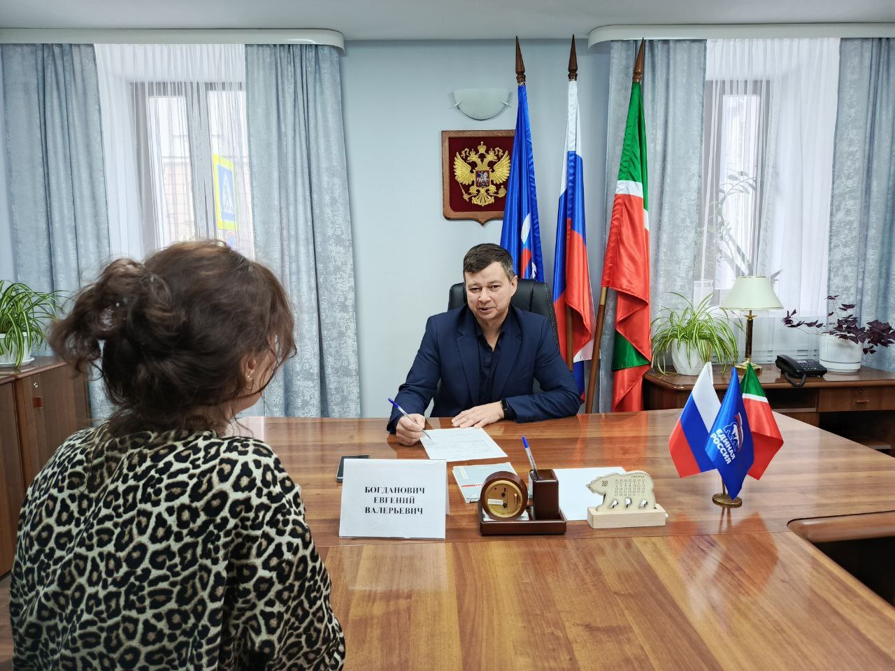 31 октября 2025 года в рамках реализации Татарстанским региональным отделением Всероссийской политической партии «ЕДИНАЯ РОССИЯ» проекта «Центр поддержки гражданских инициатив» начальник отдела по делам некоммерческих организаций Управления Министерства юстиции Российской Федерации по Республике Татарстан Е.В. Богданович провел прием граждан в Региональной общественной приемной Председателя Партии «ЕДИНАЯ РОССИЯ» Д.А. Медведева в Республике Татарстан.
