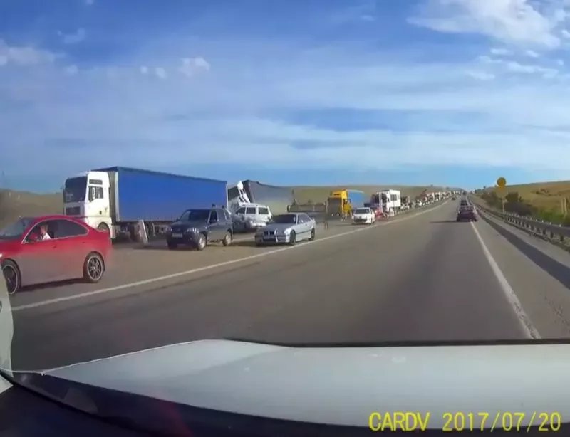 Эта авария вызвала серьезные последствия: на трассе образовалась огромная пробка длиной 15 километров. Движение пришлось временно приостановить для ликвидации последствий происшествия.
