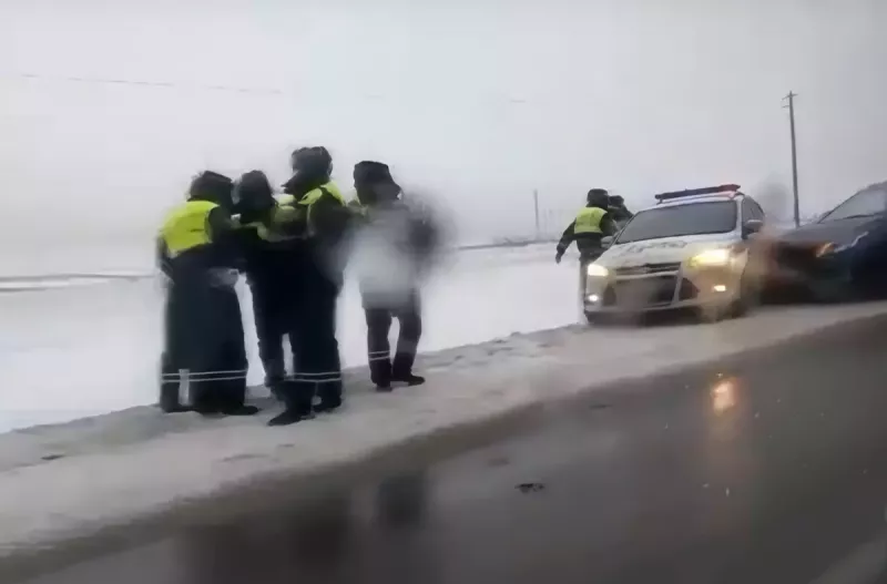На участке М-4 в Аксайском районе зафиксировали цепочку из девяти автомобилей, из которых четыре были полицейскими, столкнувшихся друг за другом. Инцидент произошел 18 января на фоне снегопада, сильного ветра и обледеневшей дороги.