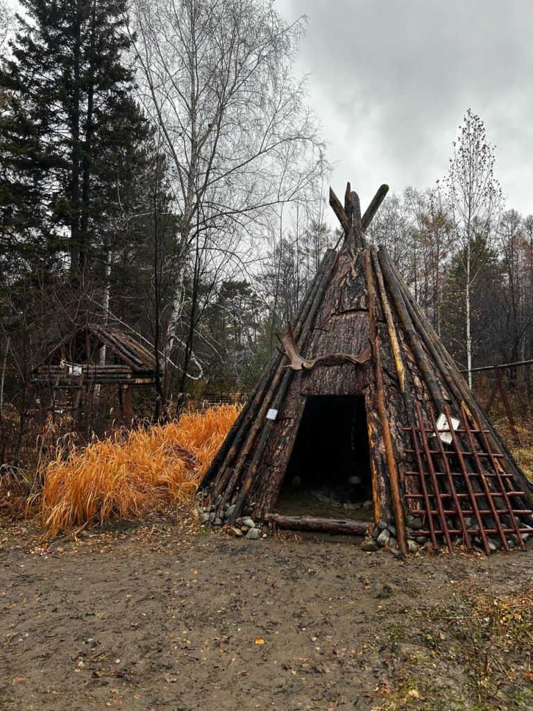 Материалы для дю – мы привыкли его называть чумом – заготавливались в Качугском и Казачинско-Ленском районах, далее все было привезено сюда, в ботанический сад. Установка проходила уже здесь. Сделать чум нужно быстро, пока кора сырая. Если она высохнет, собрать дю будет очень сложно. Мы поливали кору, чтобы поддерживать нужную влажность и сырость коры. В общем, условия для установки традиционного эвенкийского жилища непростые.