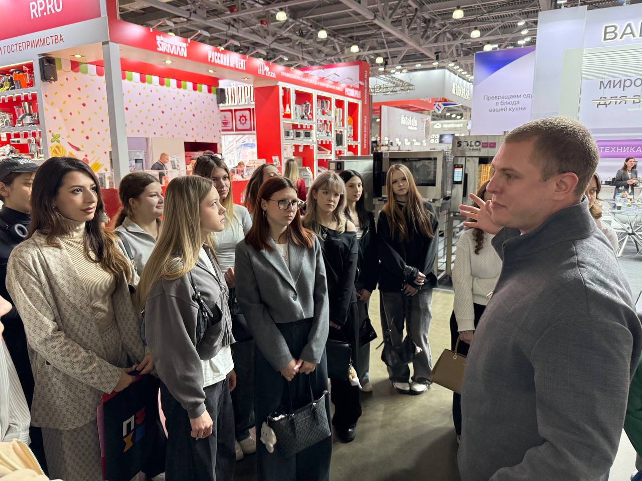 В рамках второй части практического занятия на выставке «PIR Expo 2025» обучающиеся приняли участие в мастер-классах от шеф-поваров известных ресторанов, а также послушали выступления экспертов в индустрии туризма и гостеприимства.