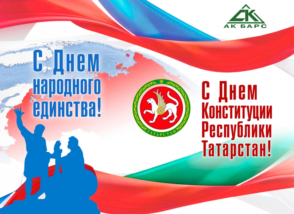 От имени коллектива АО «Судостроительная Корпорация «Ак Барс» примите самые теплые поздравления с Днем народного единства и Днем Конституции Республики Татарстан!