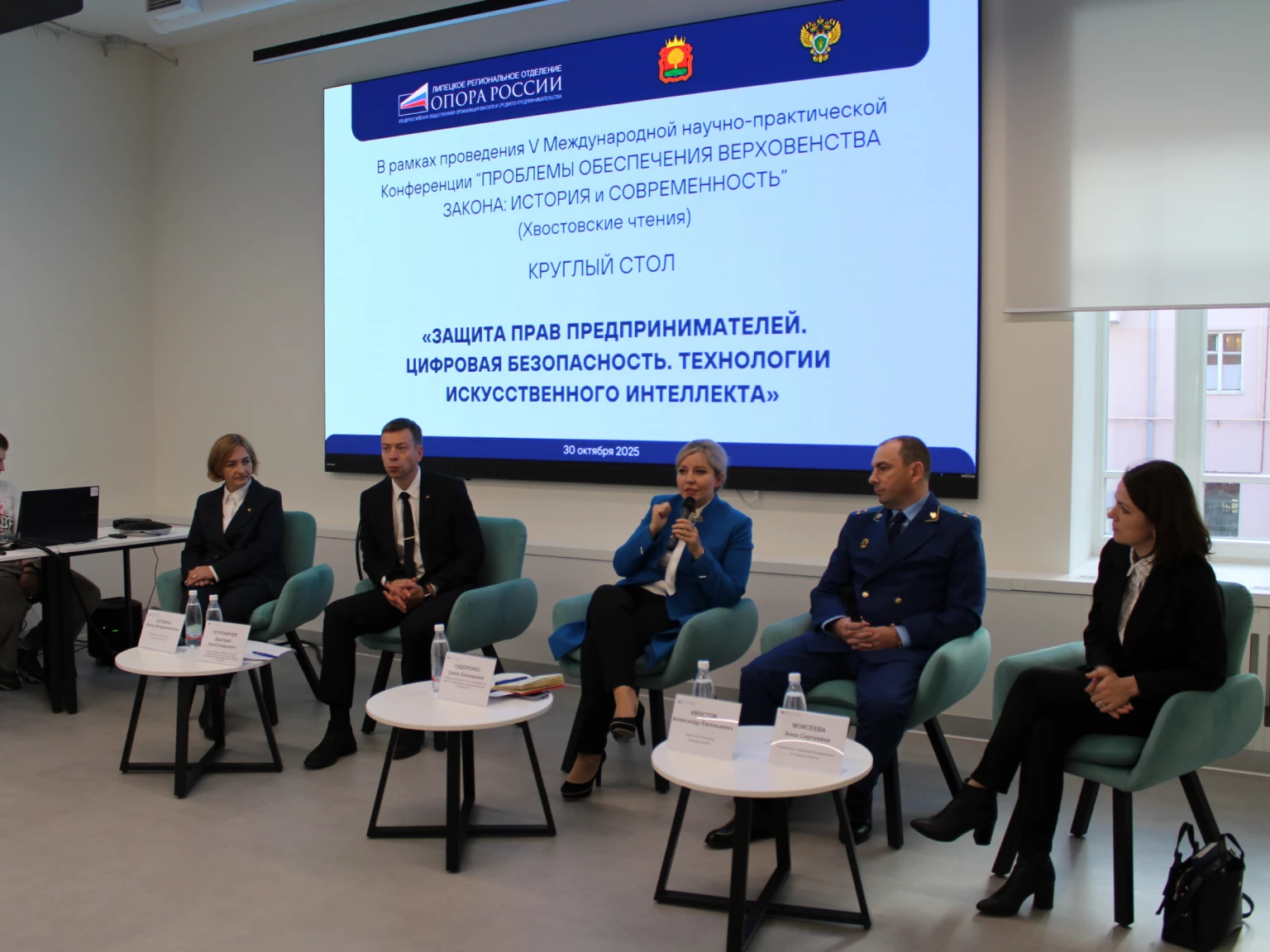 В рамках V Международной научно-практической конференции «Проблемы обеспечения верховенства закона: история и современность» (Хвостовские чтения) Липецкая «ОПОРА РОССИИ» организовало круглый стол «Защита прав предпринимателей, цифровая безопасность, технологии искусственного интеллекта». Модераторами обсуждений выступили Вице-президент «ОПОРЫ РОССИИ», Управляющий Бюро по защите прав предпринимателей и инвесторов Дмитрий Петровичев и генеральный директор АНО «Платформа для работы с обращениями предпринимателей» Элина Сидоренко.