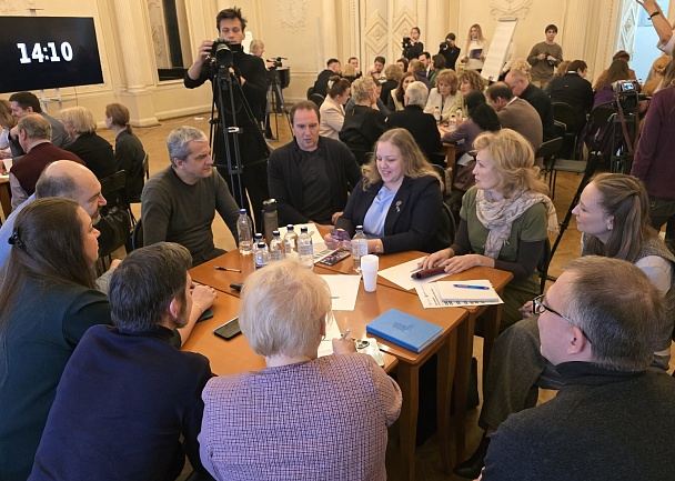 Мероприятие прошло в Белом зале – одном из красивейших залов института, которое объединило 56 педагогов-мастеров, выполняющих ключевую роль в воспитании молодого поколения деятелей культуры. В течение всего дня выступления экспертов чередовались с тренингами, групповой работой и мозговыми штурмами.