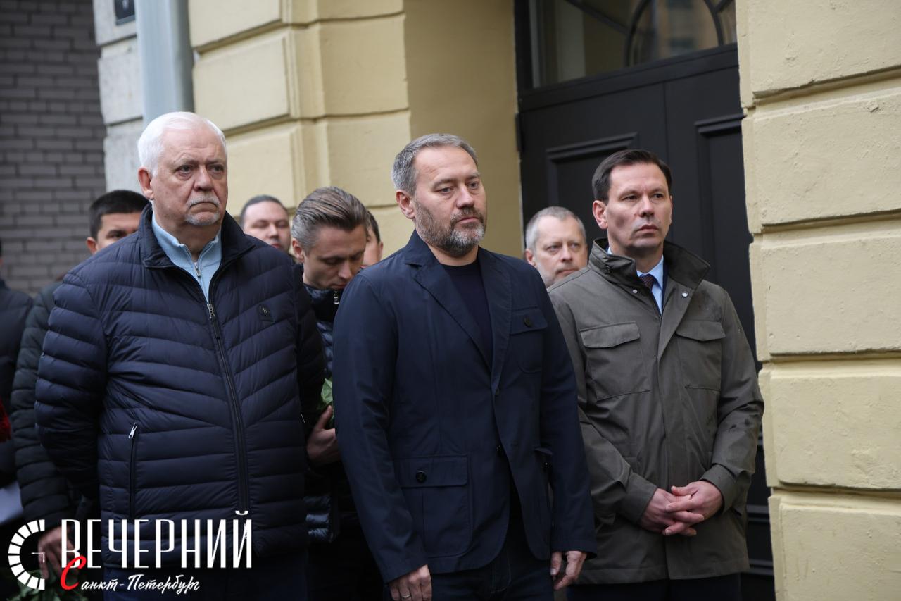 В церемонии открытия мемориальной доски принял участие председатель Законодательного Собрания Санкт‑Петербурга, президент Федерации футбола города Александр Бельский.