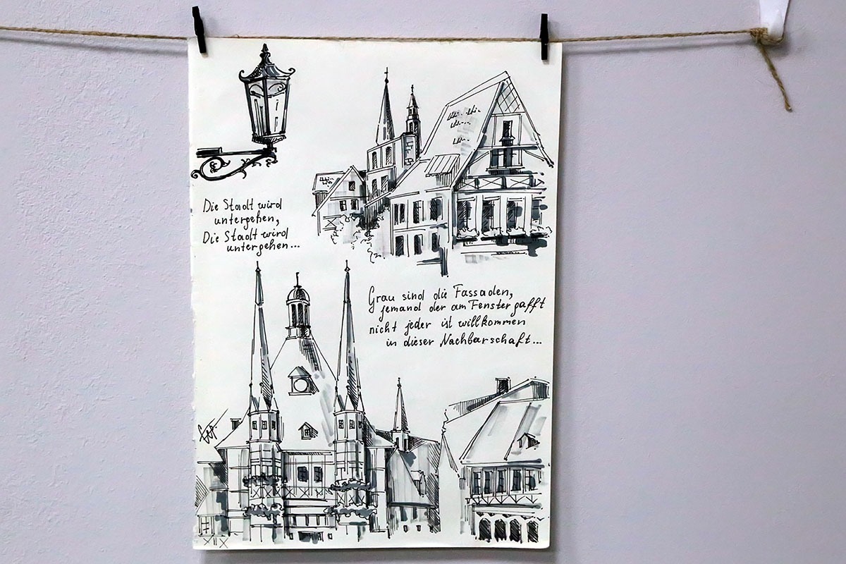 — Я с детства любила путешествовать, а особенно много интересных поездок пришлось на период обучения в старших классах и университете. Тогда я первые посетила множество городов в России и за рубежом, и много рисовала в дороге. Отсюда и возникло название экспозиции «Монолог странствующего художника», а практически все работы, представленные на выставке, были нарисованы с натуры. В основном это камерные пленэрные зарисовки в смешанной технике, гуашью, маркерами для скетчинга, линерами и тушью, — рассказала Екатерина Сертакова.