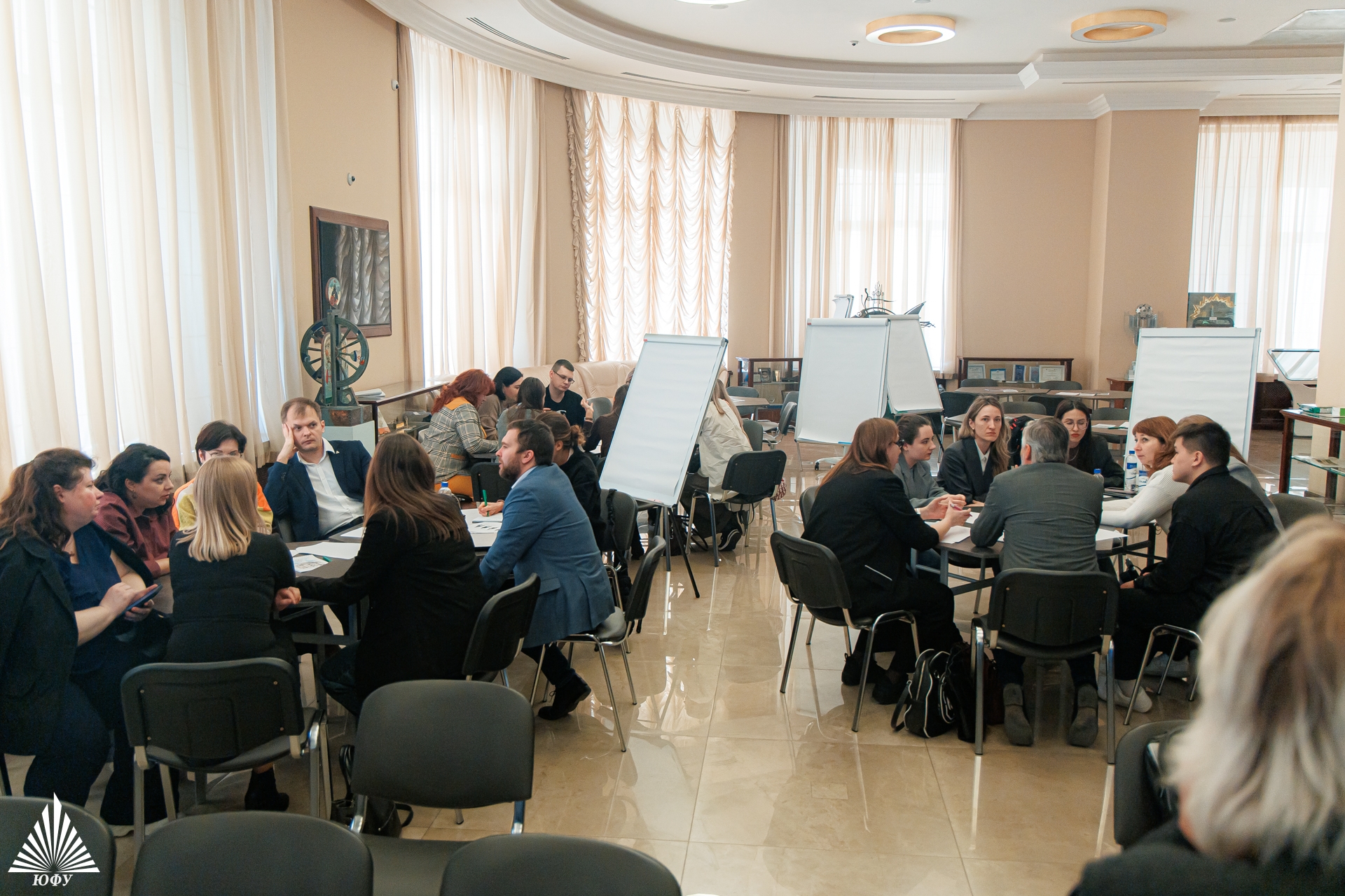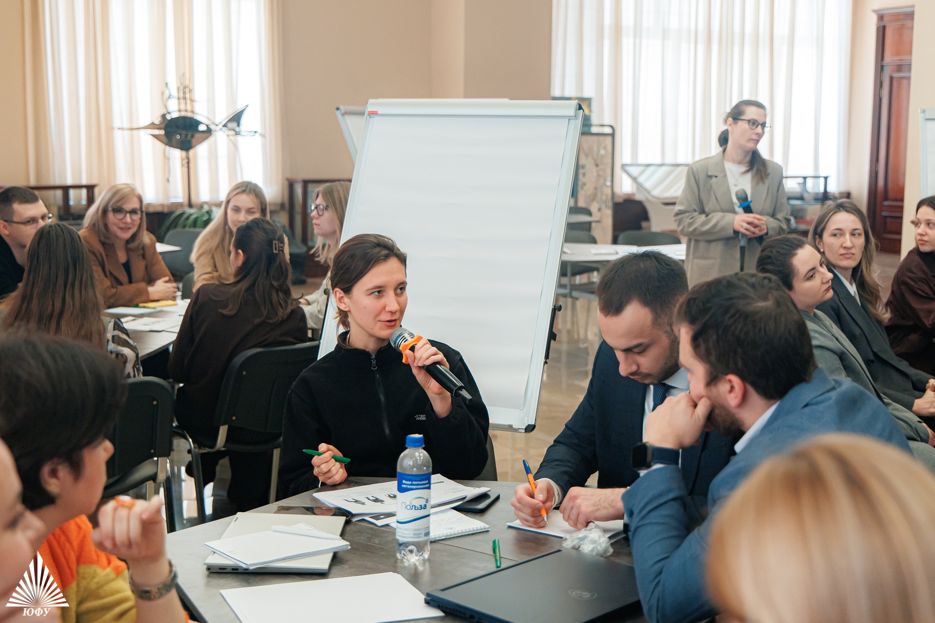 Целью сессии было коллективное обсуждение текущего позиционирования ЮФУ и выработка контуров его будущего бренда. В ходе активной работы участники вместе с модераторами анализировали сильные стороны и точки роста университета, определяли его уникальное ценностное предложение и намечали перспективные векторы развития.