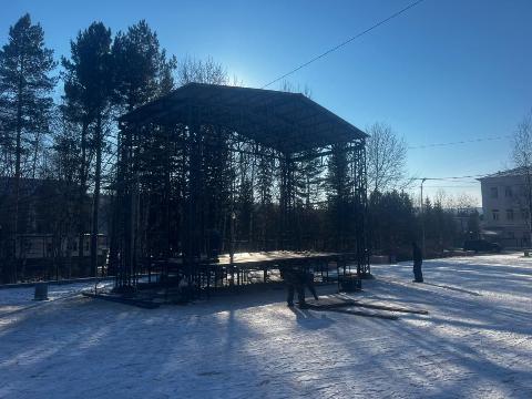 В Бодайбо на площади напротив музыкальной школы заканчивается строительство новой профессиональной стационарной сцены для городских мероприятий.