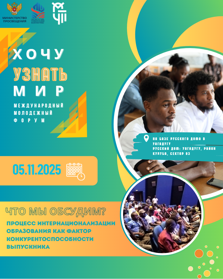 Официальные мероприятия стартуют в Буркина-Фасо уже 5 ноября. На этот день запланировано официальное открытие Центра открытого образования на русском языке и обучения русскому языку ЮУрГГПУ в г. Уагадугу на базе негосударственного Русского дома. После этого планируется проведение Международного молодёжного форума «Хочу узнать мир». Мероприятие направлено на демонстрацию возможностей российского образования в Африке, стимулирование изучения русского языка и русской культуры.