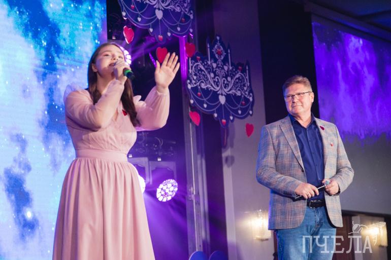Творческое видеопоздравление от Ирины Текслер на сцене продолжила участница студии эстрадного вокала «Тутти», подопечная благотворительного фонда «Андрюша» — Полина Кожевникова.