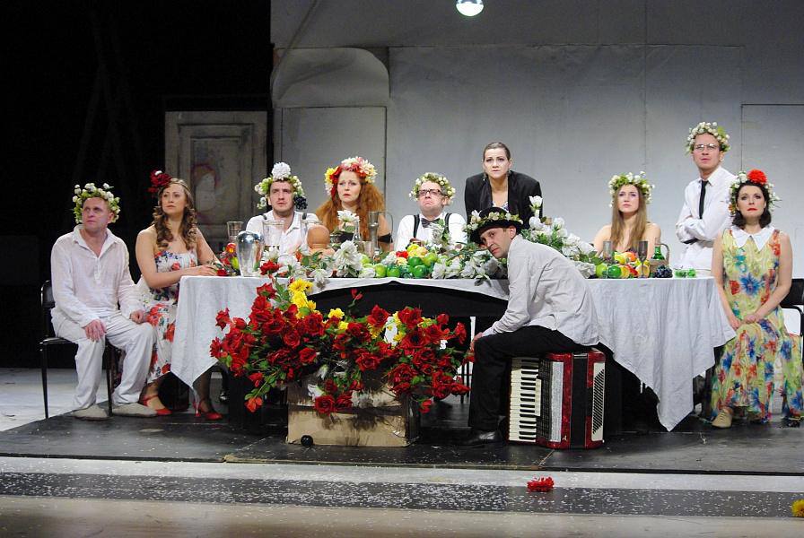 Практически заново пришлось создавать декорации и костюмы. Искать по Москве место, подходящее для столь сложных репетиций, — нашлось на “Мосфильме”. Но фуры с декорациями уже едут к границе, а актёры продолжают настраиваться на спектакль, который никогда не был для них рядовым, но всегда оставался целым отдельным миром, возникшим из одного документального (и очень бутусовского) образа — петербургской актрисы Валентины Караваевой. Она “проснулась знаменитой” после первой же кинороли, пострадала в аварии и всю оставшуюся жизнь играла “Чайку” перед включённой кинокамерой — в полном одиночестве».