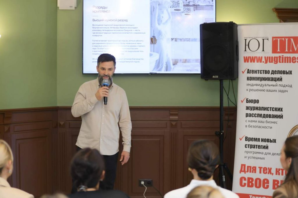 Генеральный директор комплекса Дмитрий Лаврентьев провел небольшой экскурс в историю создания банного формата, которая своими корнями уходит в эпоху правления Екатерины II, рассказал о традициях и услугах легендарных бань. Он отметил благотворное влияние процедур на мужское здоровье и женскую красоту, сделал акцент на том, что сегодня баня — это не только очищение тела, но и эстетическое удовольствие от посещения комплекса, где и интерьер, и процедуры, которые проводят опытные специалисты, — настоящее искусство, созданное на основе знаний наших предков в самом что ни на есть русском духе.
