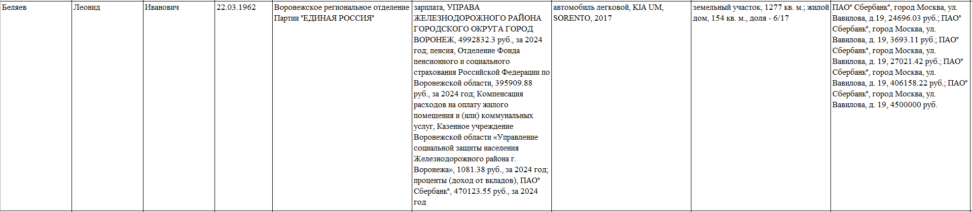 Будучи кандидатом в депутаты, Леонид Иванович предоставил в избирательную комиссию сведения о своих доходах и имуществе. Из них следует, что труд муниципального служащего, возглавлявшего районную управу нашего города – ценится достаточно высоко. Заработная плата Беляева на этом посту составила почти 5 млн рублей за 2024 год. Если быть более точным, то чиновник зарабатывал 416 тыс. рублей в месяц. Дополнительными источниками дохода стали: пенсия – на 395,9 тыс. рублей за год, а также процент по доходу от вкладов на 470 тыс. рублей. На банковских счетах народного избранника по состоянию на 1 июня 2025 года также лежало почти 5 млн рублей. Вероятно, в личном бюджете Леонид Беляев придерживается особого правила – зарабатывать 5 миллионов, и всегда иметь при себе тоже 5 миллионов.
