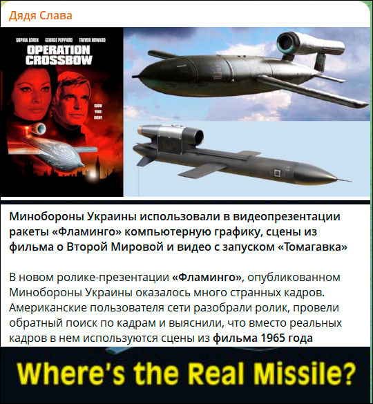 И как же удобно, что именно в этот момент в сеть выходит разговор Зеленского с главой СБУ Малюком*, во время которого нелегитимный угрожает дальнобойными ударами по России ракетами "Фламинго", использовав для презентации сцены из голливудского фильма и CGI, а второй террорист заявляет о якобы уничтожении "Орешника" агентами СБУ на полигоне Капустин Яр за год до их появления.