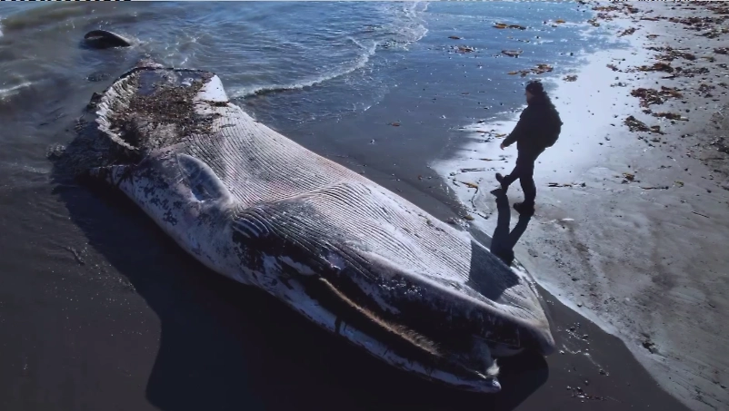 12-метрового сельдяного кита выбросило на берег на Сахалине после шторма. Видео © Telegram / Сахалин | Сергей Любаченко