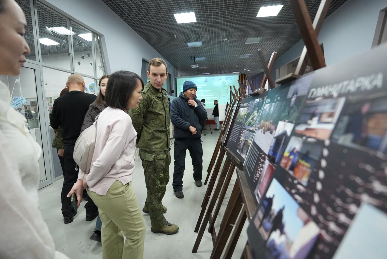 Представитель Восточного военного округа майор Ирина Ким отметила, что выставка отражает всю тяжесть боевой работы бойцов специальной военной операции.