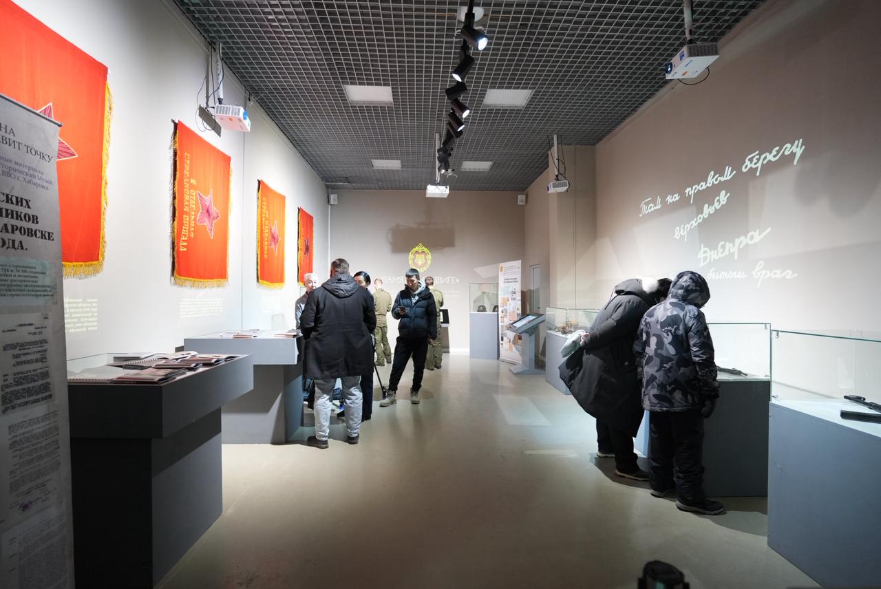 Выставки уникальных экспонатов из фондов Военно-исторического музея Дома офицеров Восточного военного округа в Хабаровске, работ военных корреспондентов на спецоперации Ирины Ким, Александра Авдеева, Эдуарда Самылина и Сергея Бордачева, картин фронтового художника Артёма Журавлёва открыли сегодня в рамках III Республиканского антифашистского форума «Народ и армия едины» в Историческом парке «Россия – Моя история».