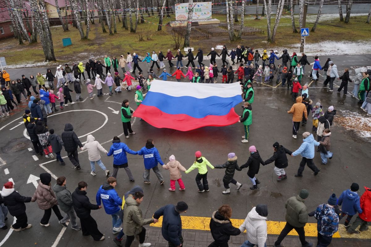 Завершилось мероприятие народными танцами и флешмобом с флагами Российской Федерации.