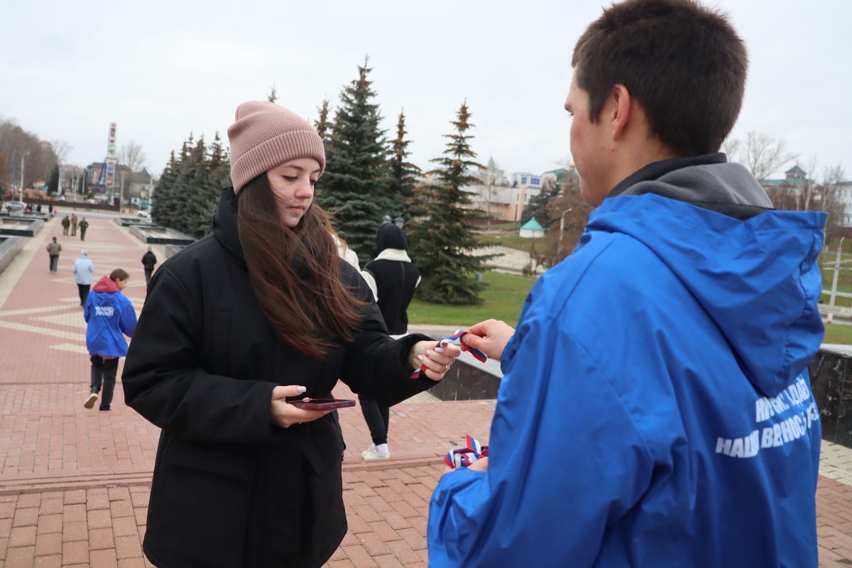 Молодогвардейцы в честь праздника раздали жителям города более 500 лент российского триколора.