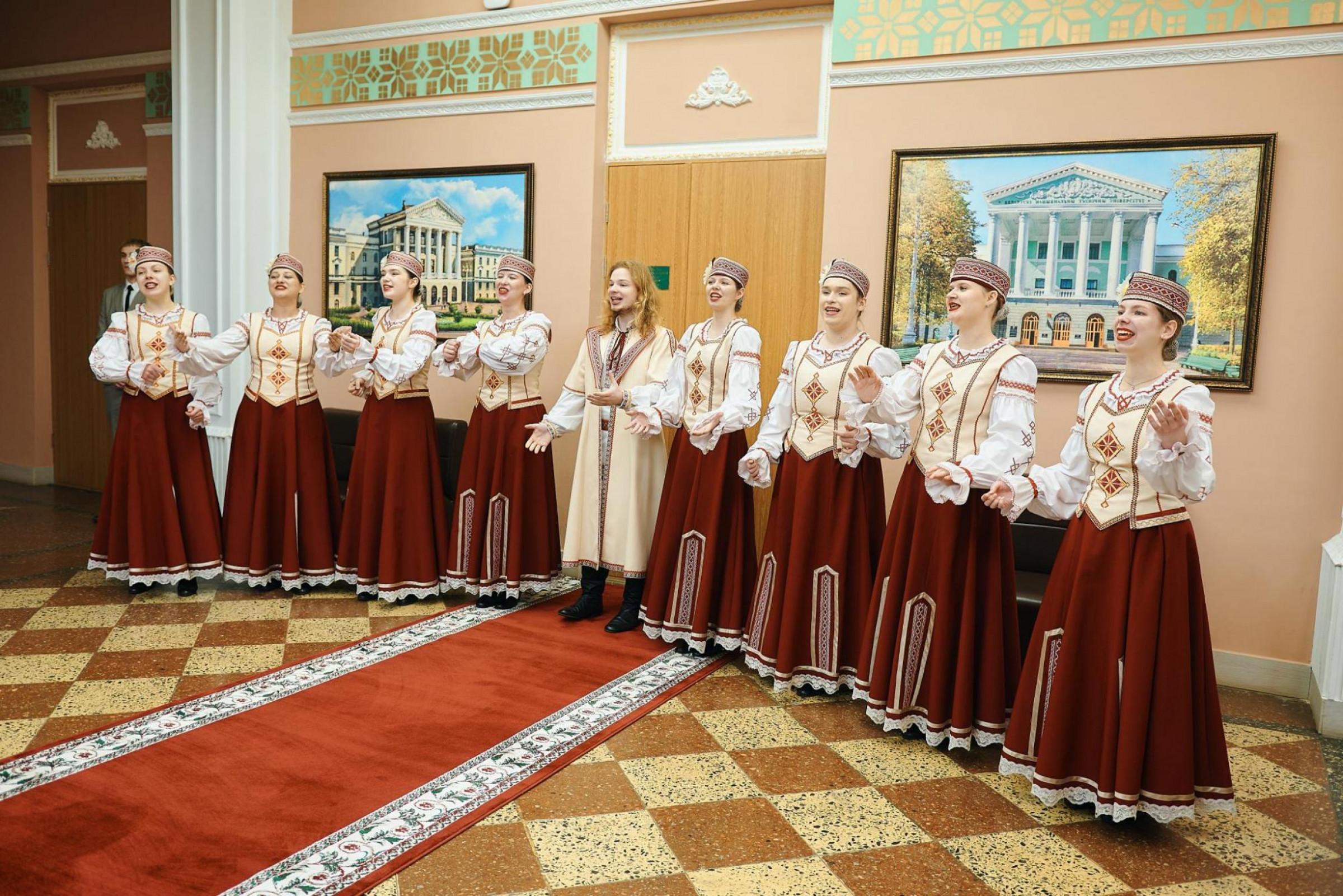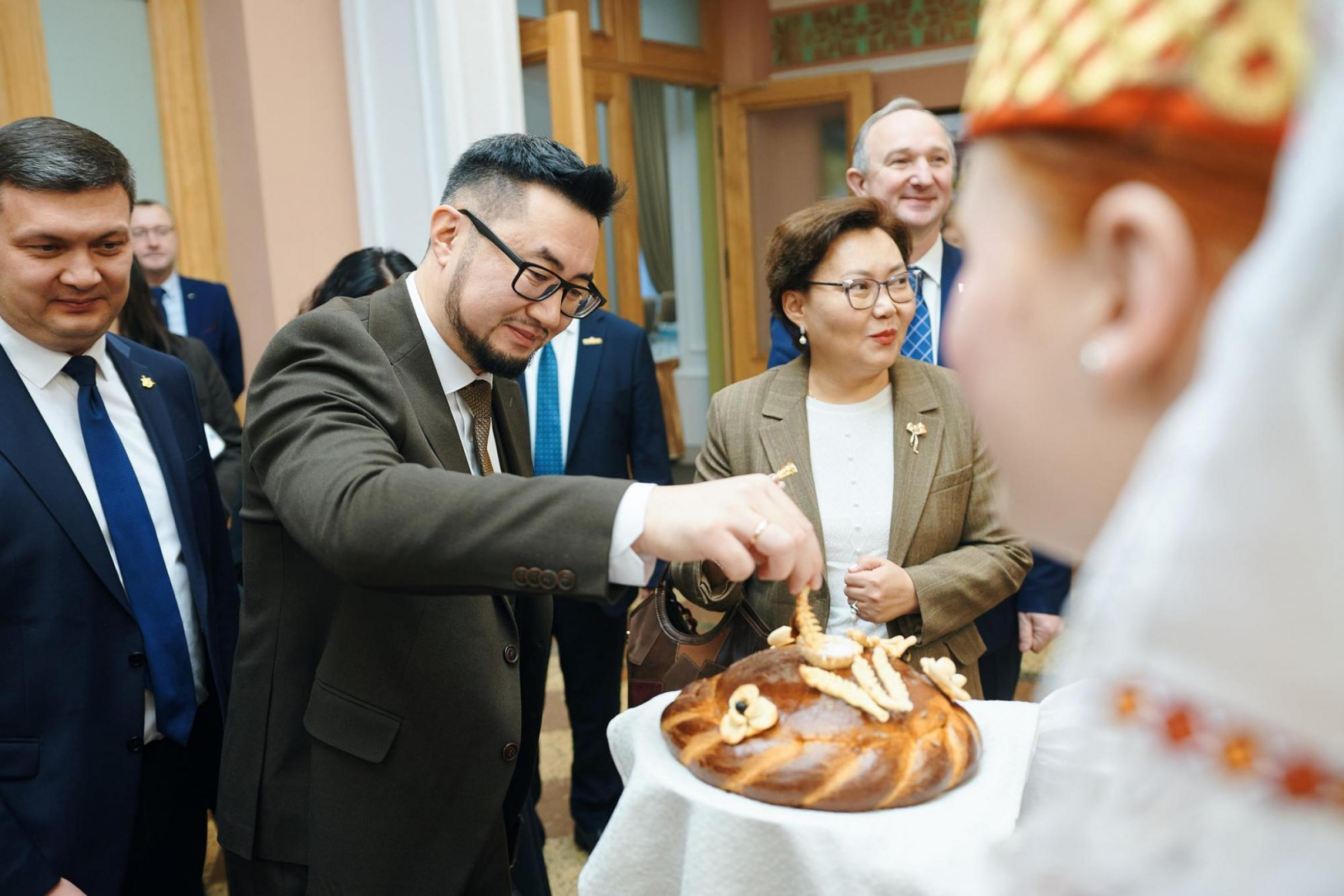 Перед открытием заседания представителей делегаций Казахстана встретили в лучших белорусских традициях: с музыкальным выступлением ансамбля народной песни «Каханачка» и хлебом с солью.