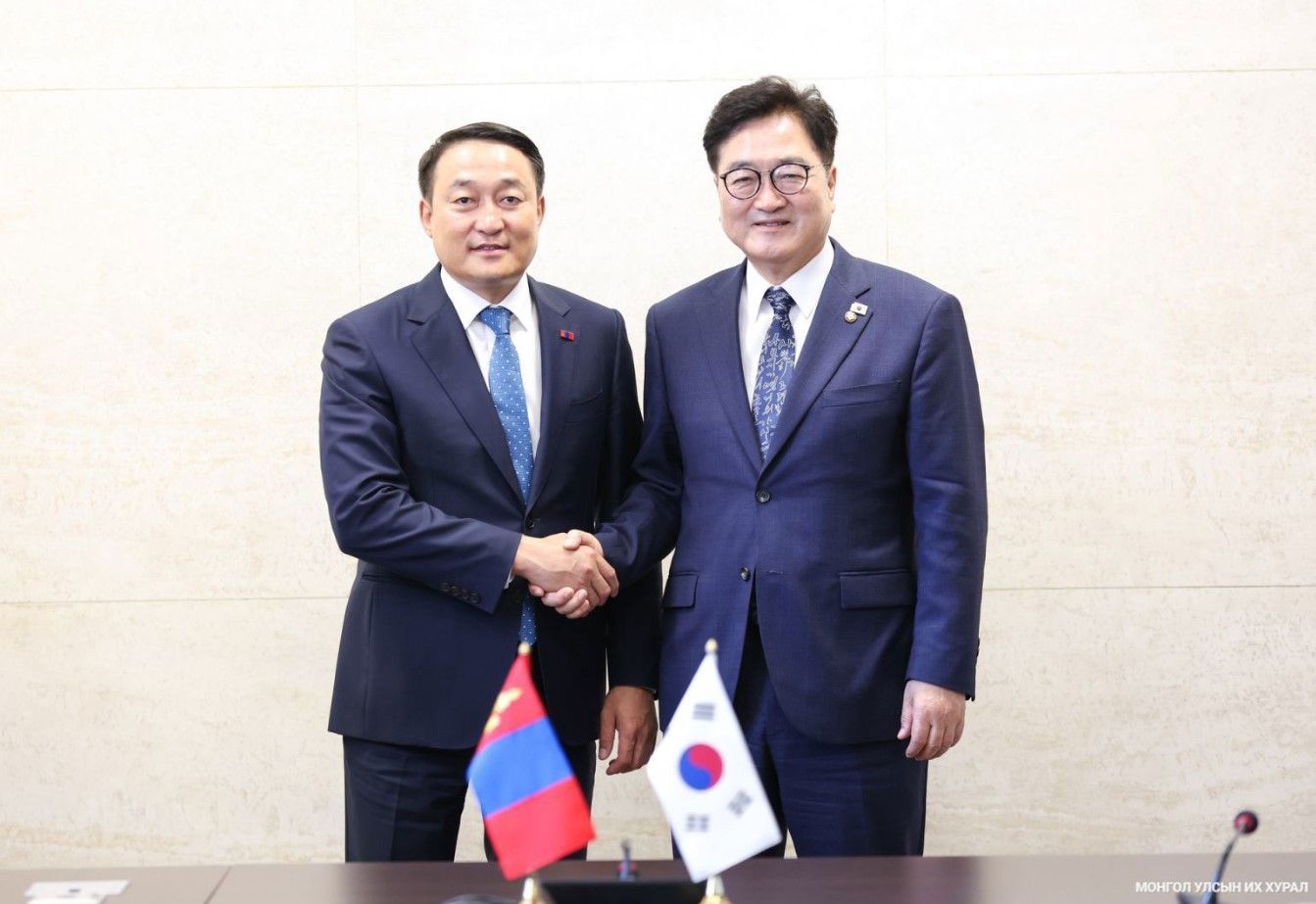 Встреча Амарбаясгалана Дашзэгве, председателя Великого государственного хурала Монголии, и Ву Вон Сика, спикера Национальной ассамблеи Южной Кореи, 30 июля 2025 года. Фото: Парламент Монголии.