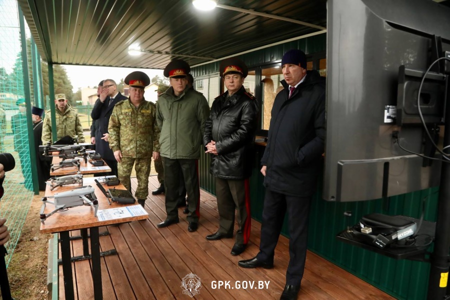В учебном комплексе «Пограничная застава» участники мероприятия ознакомились с современными аудиториями, спортгородком, питомником служебных собак, помещением для временно задержанных лиц и учебным городком пограничной службы. Одной из важнейших точек стала специализированная учебно-материальная база для подготовки операторов FPV-дронов, где были продемонстрированы возможности БЛА и тактика применения их различных видов. Возможность трансляции видеоинформации в онлайн-режиме на экраны учебно-методического комплекса позволяет курсантам-операторам совершенствовать навыки управления летательными аппаратами в различных условиях обстановки.