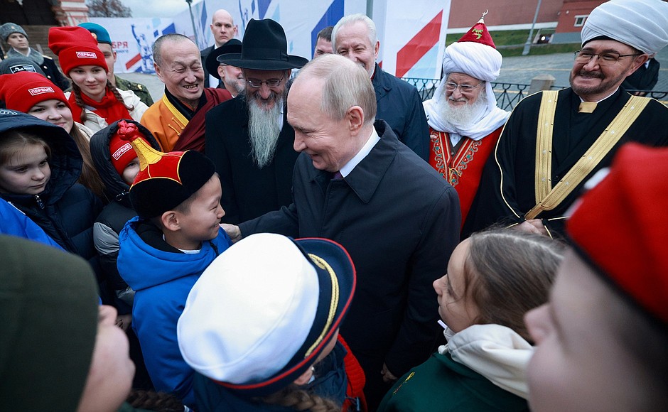 Ранее в этот же день Владимир Путин возложил цветы к памятнику Кузьме Минину и Дмитрию Пожарскому на Красной площади в Москве, сказано на сайте Кремля.
