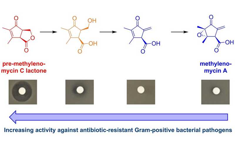 Британские ученые проанализировали роль четырех генов в биосинтезе метиленомицина A — антибиотика, вырабатываемого почвенной бактерией Streptomyces coelicolor. Авторы не только описали роль четырех исследуемых генов, но и выявили ряд ранее неописанных метаболитов. Два из них — преметиленомицин C и его лактонная форма — были на порядок и на два порядка эффективнее метиленомицина A против грамположительных бактерий, включая резистентные формы Staphylococcus aureus и Enterococcus faecium. Вероятно, в ходе эволюции эффективность антибиотика снизилась, однако взамен появилась способность поражать грамотрицательные бактерии.
