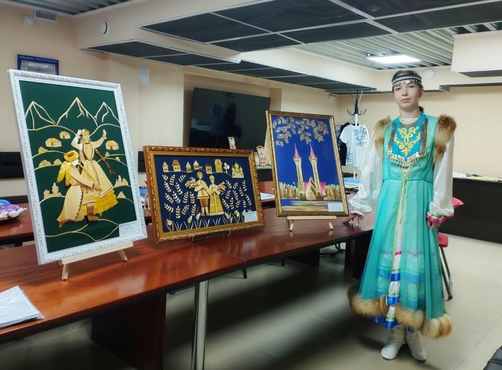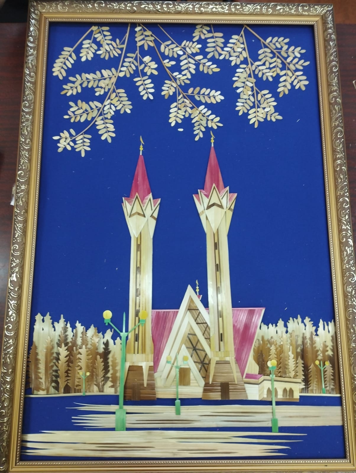 – Посещаю объединение уже пятый год, – рассказала Карина. – Свои картины создаю из обычной соломки, которая растёт у нас в полях. Летом мы собираем соломку, обрабатываем её, разглаживаем, клеем на бумагу, вырезаем детали для той или иной композиции и наклеиваем на основу, в результате получаются замечательные картины, которые могут украсить интерьер. А также их можно дарить на различные праздники своим друзьям, родственникам и знакомым. Создание аппликации из соломки – сложное и трудоемкое дело. На последнюю работу – «Мечеть Ляля-Тюльпан» – потребовалось три месяца. Для этой картины также использовались тонировка элементов, окрашивание соломки анилиновыми красителями и выжигание отдельных деталей.